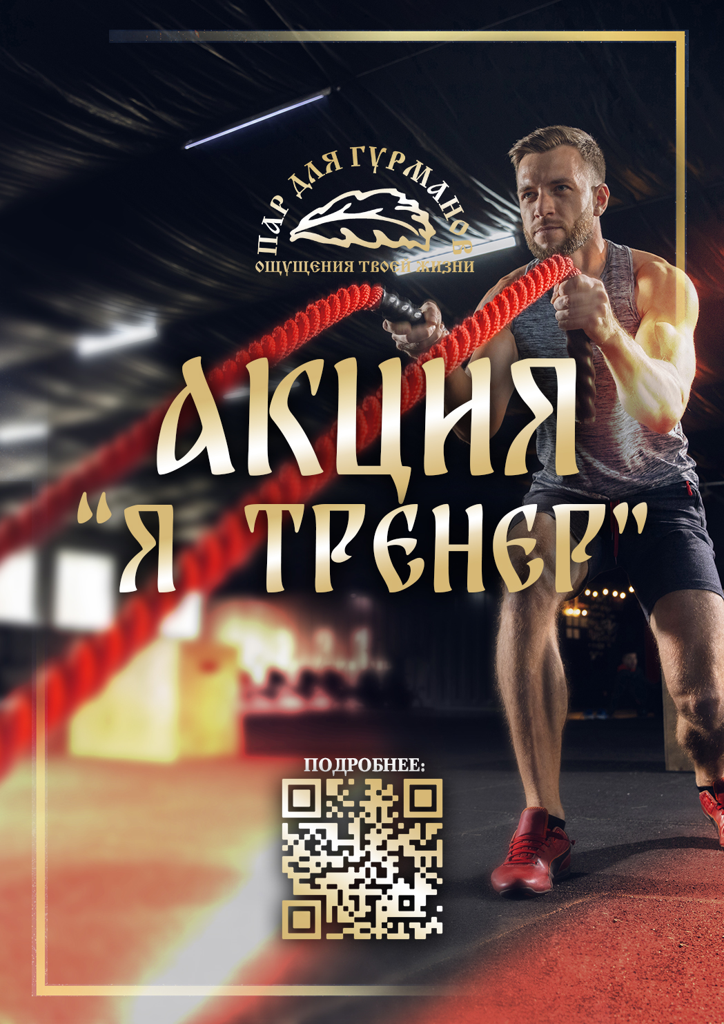 Для тренеров: Для участия в акции необходимо прийти в общественную баню (по адресу: ...) и предоставить подтверждение того, что Вы являетесь тренером. Мы зарегистрируем Вас в программе (для этого нам необходимы ФИО и действующий номер телефона). Затем Вы получите бесплатное посещение бани (2 часа) и 5 карточек с 50% скидкой для Ваших спортсменов. Через каждые 5 отметок о посещении бани Вашими спортсменами мы будем дарить Вам бесплатное посещение бани!